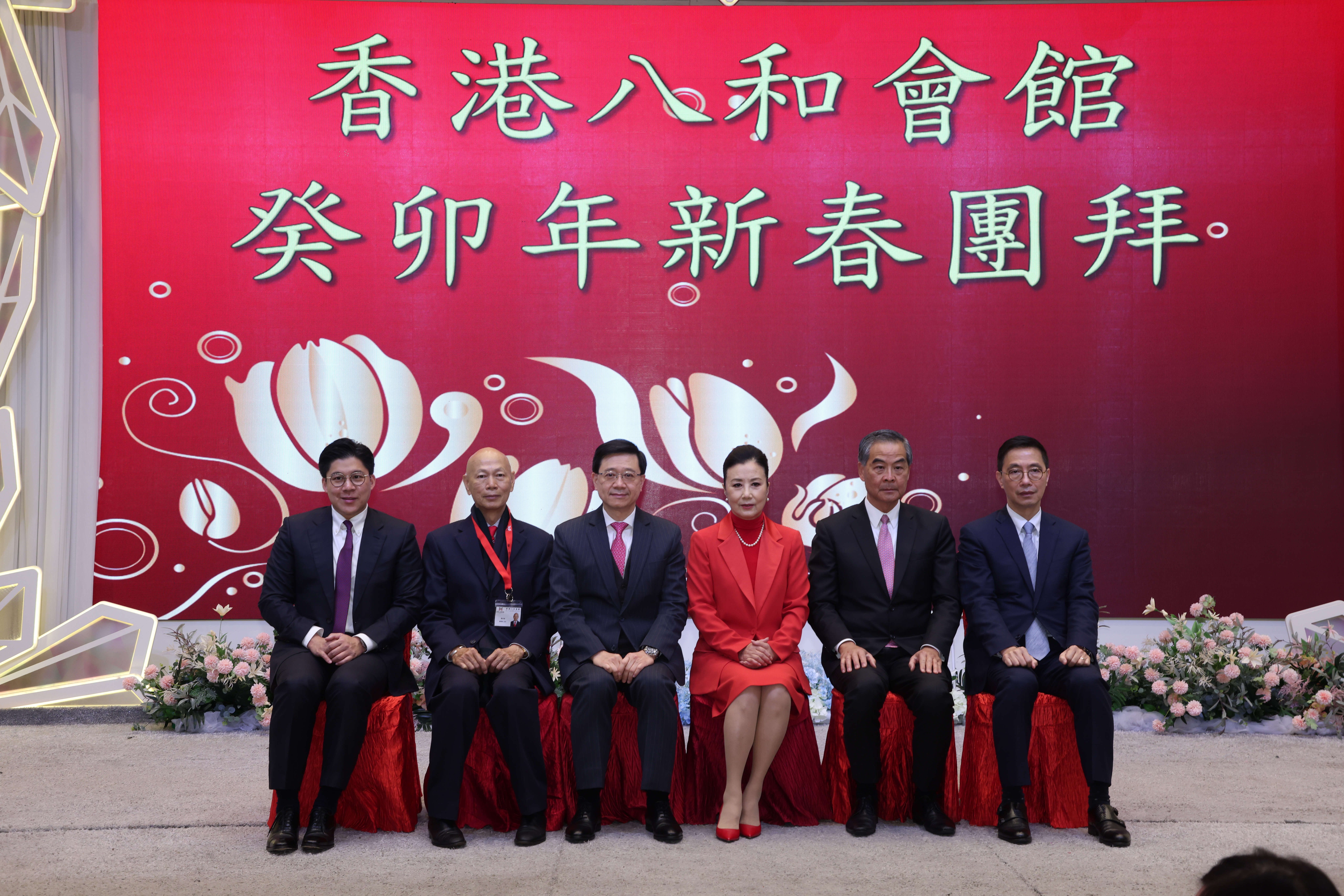 今年團拜榮幸獲得中華人民共和國香港特別行政區行政長官李家超先生,大紫荊勳賢,SBS, PDSM, PMSM、中國人民政治協商會議第十三屆全國委員會副主席梁振英先生,大紫荊勳賢,GBS, JP,文化體育及旅遊局局長楊潤雄先生,GBS, JP、香港立法會體育、演藝、文化及出版界霍啟剛議員, JP擔任主禮嘉賓。