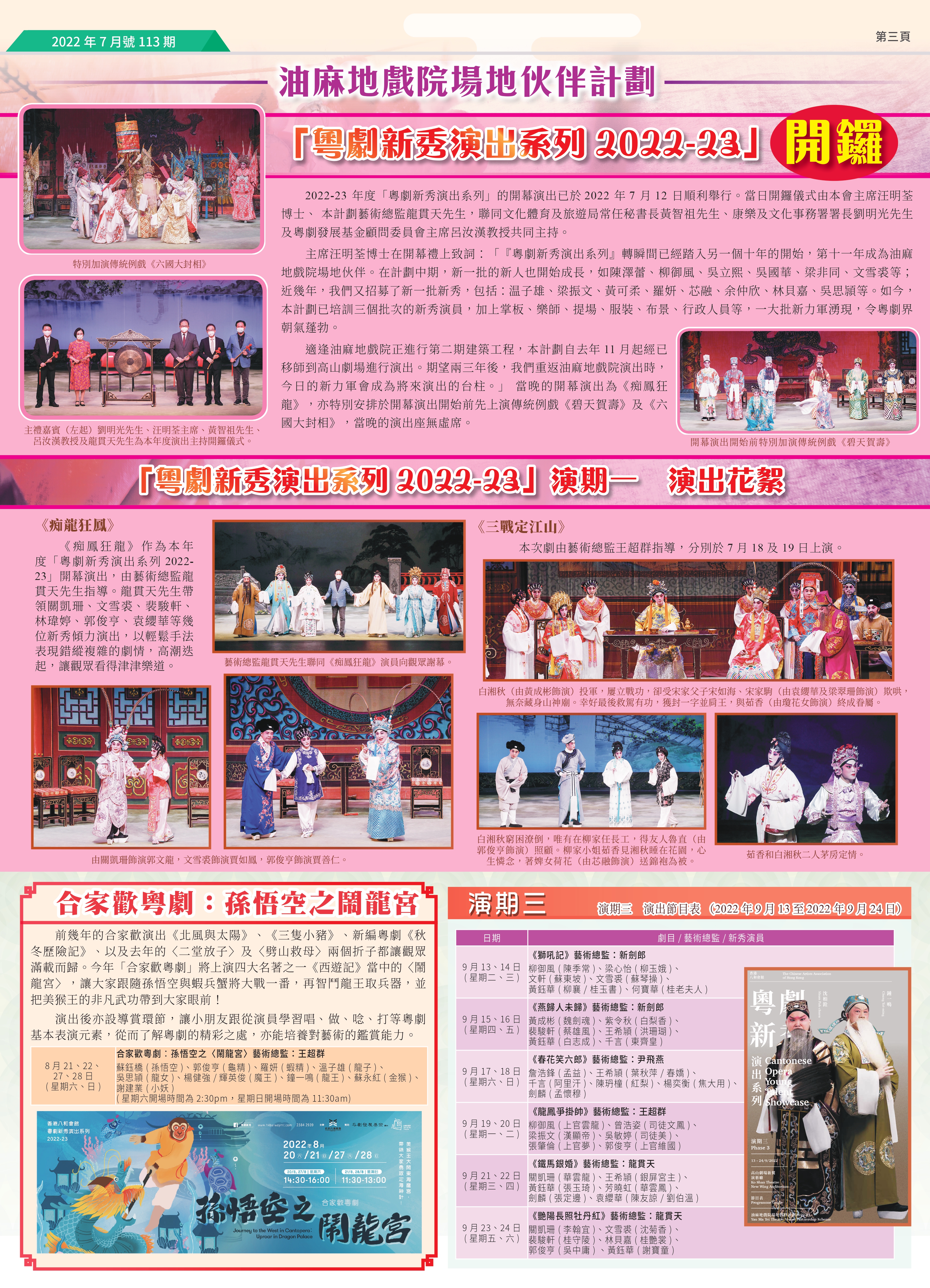 「粵劇新秀演出系列2022-23」 開鑼;合家歡粵劇:孫悟空之鬧龍宮;演期三 演出節目表