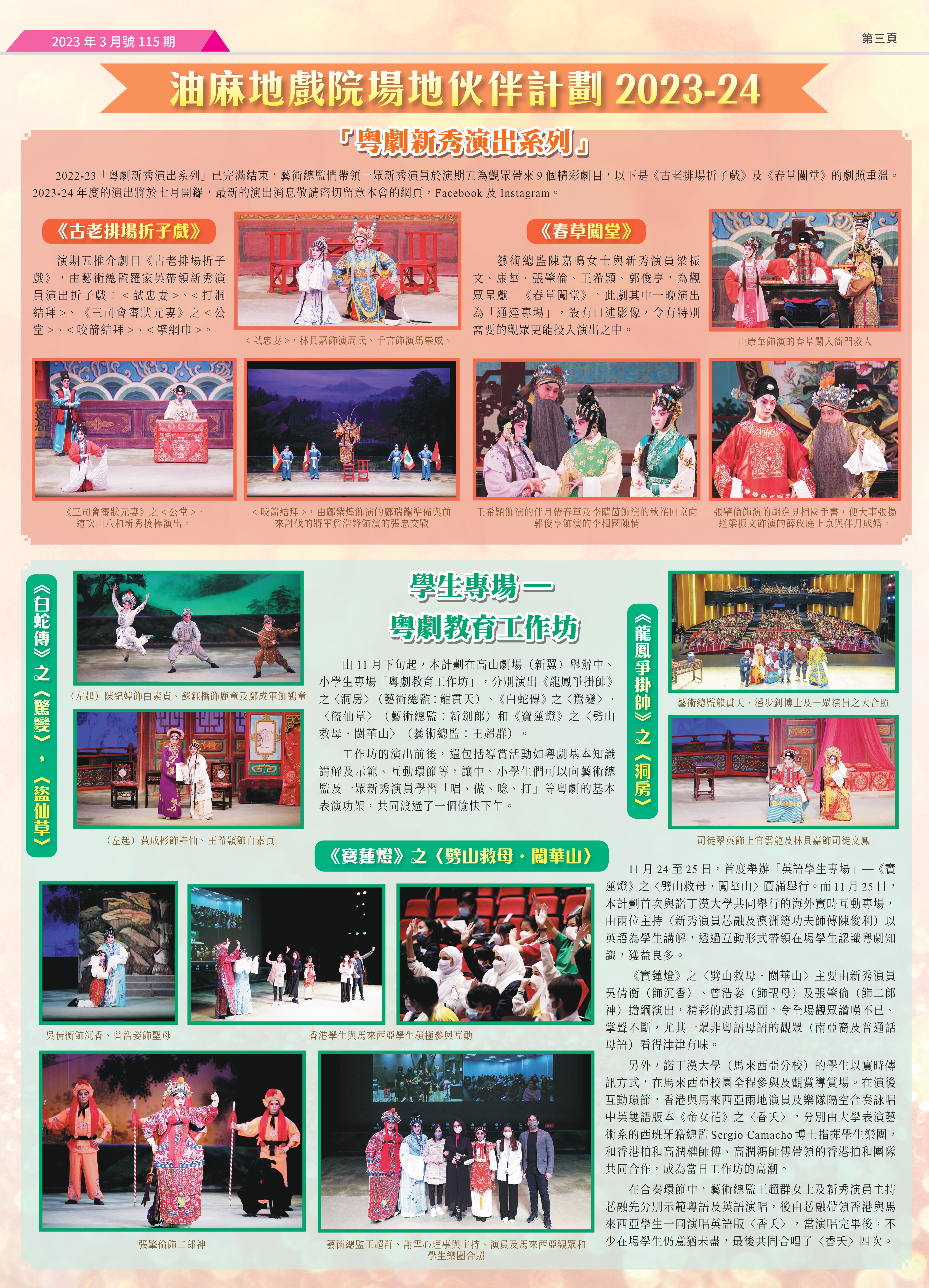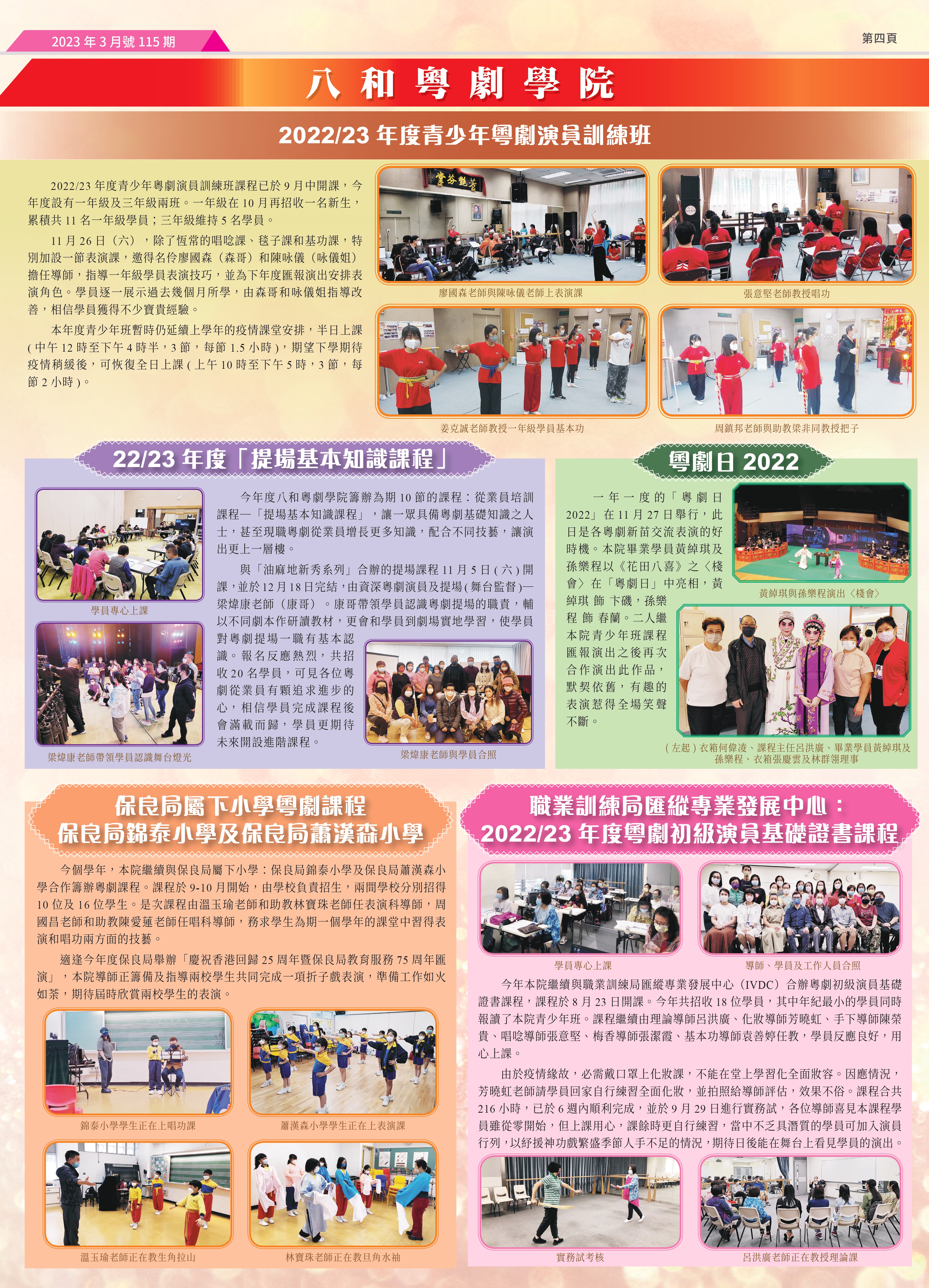 2022/23 年度青少年粵劇演員訓練班;22/23 年度「提場基本知識課程」;粵劇日2022;保良局屬下小學粵劇課程 保良局錦泰小學及保良局蕭漢森小學;職業訓練局匯縱專業發展中心:2022/23 年度粵劇初級演員基礎證書課程