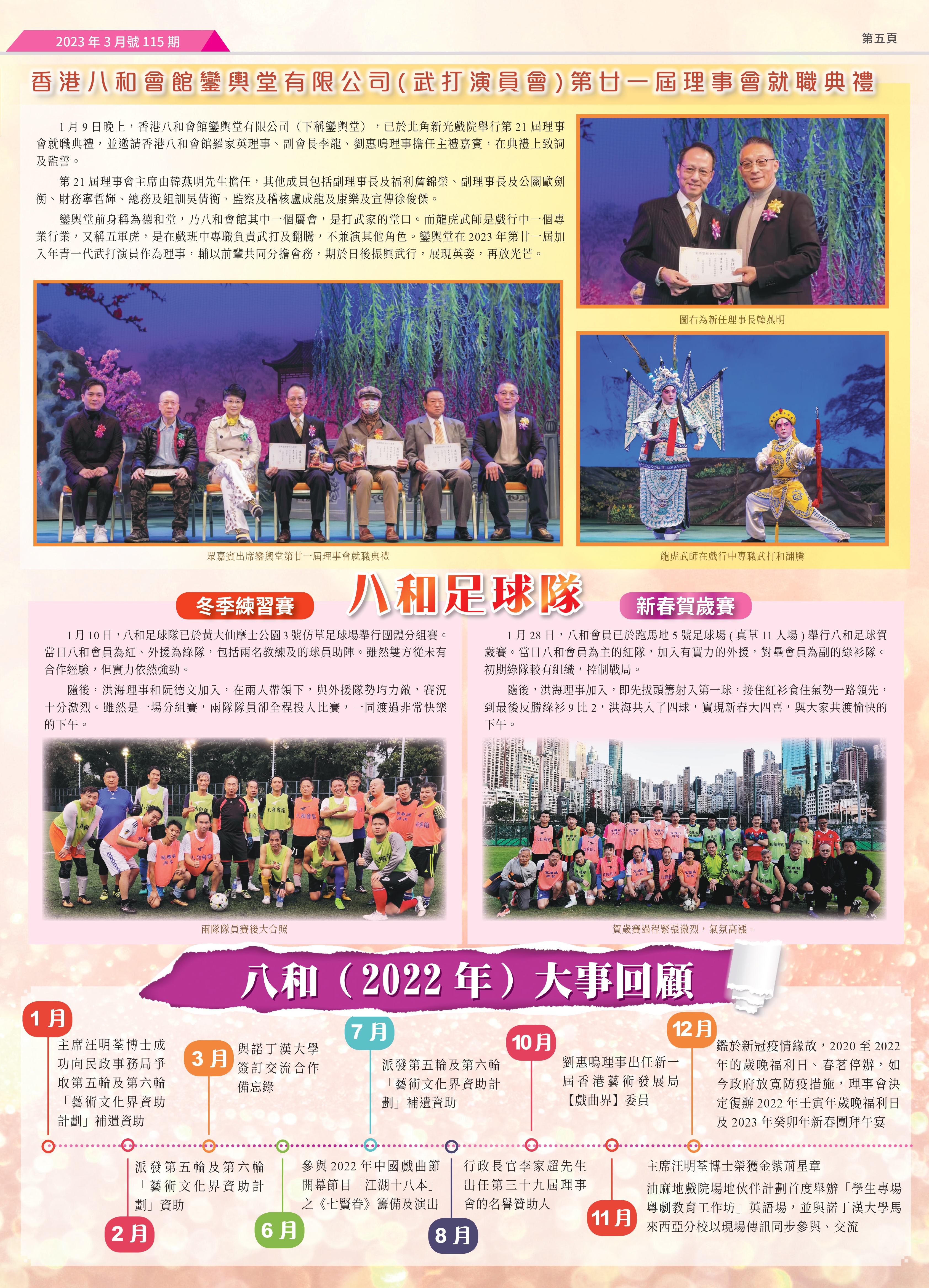 香港八和會館鑾輿堂有限公司( 武打演員會) 第廿一屆理事會就職典禮 ;八和足球隊;八和(2022 年)大事回顧
