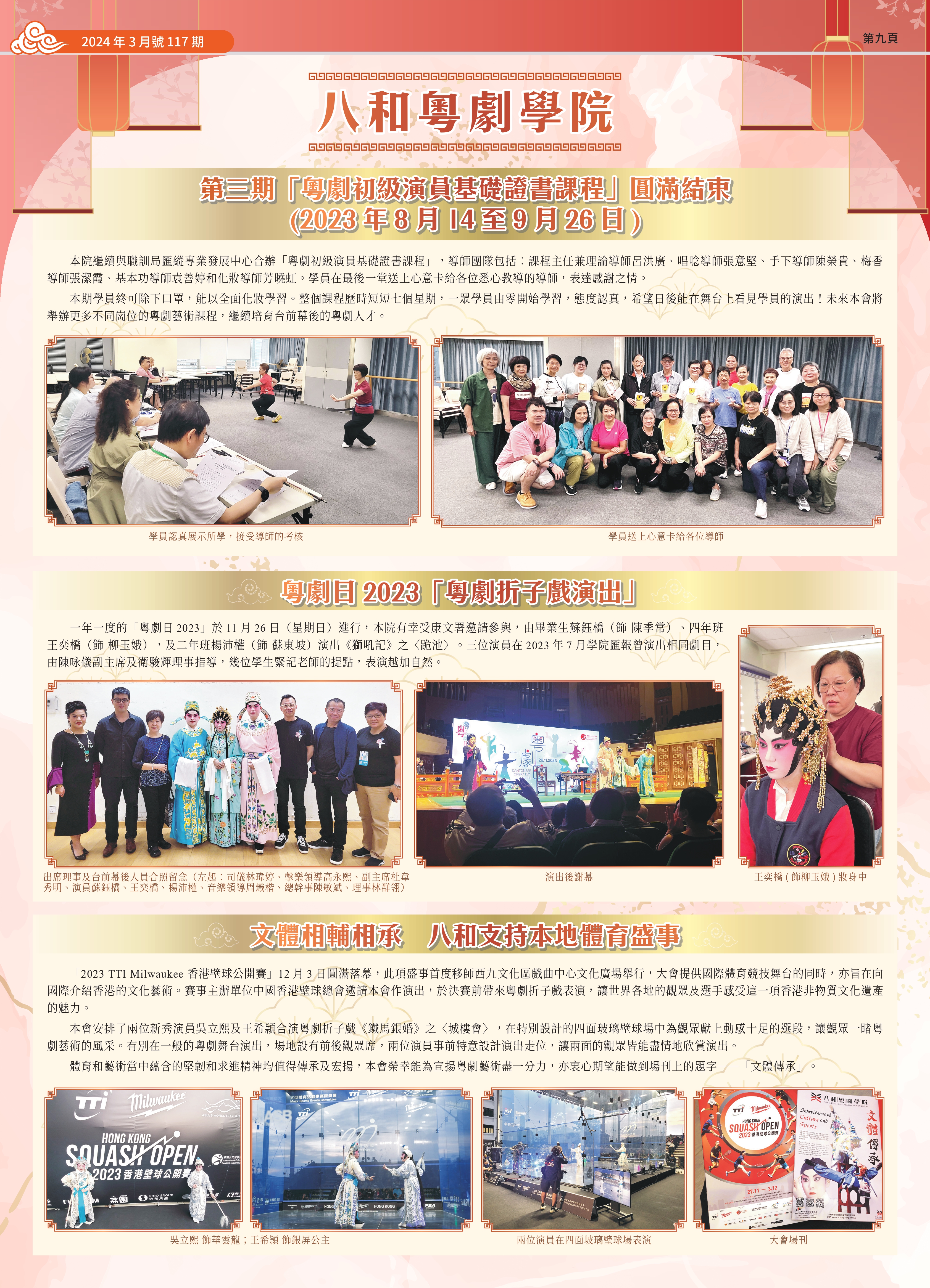 八和粵劇學院————第三期「粵劇初級演員基礎證書課程」圓滿結束 (2023 年 8 月 14 至 9 月 26 日 );粵劇日 2023「粵劇折子戲演出」;文體相輔相承 八和支持本地體育盛事;