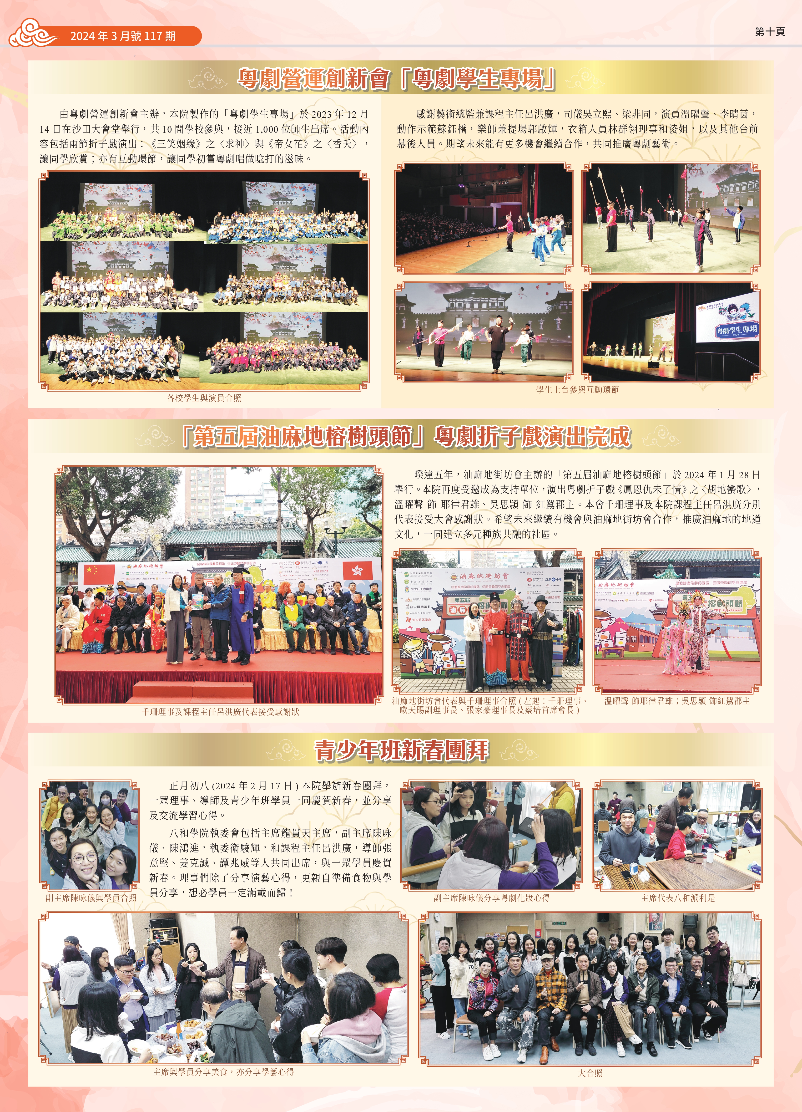粵劇營運創新會「粵劇學生專場」;「第五屆油麻地榕樹頭節」粵劇折子戲演出完成;青少年班新春團拜