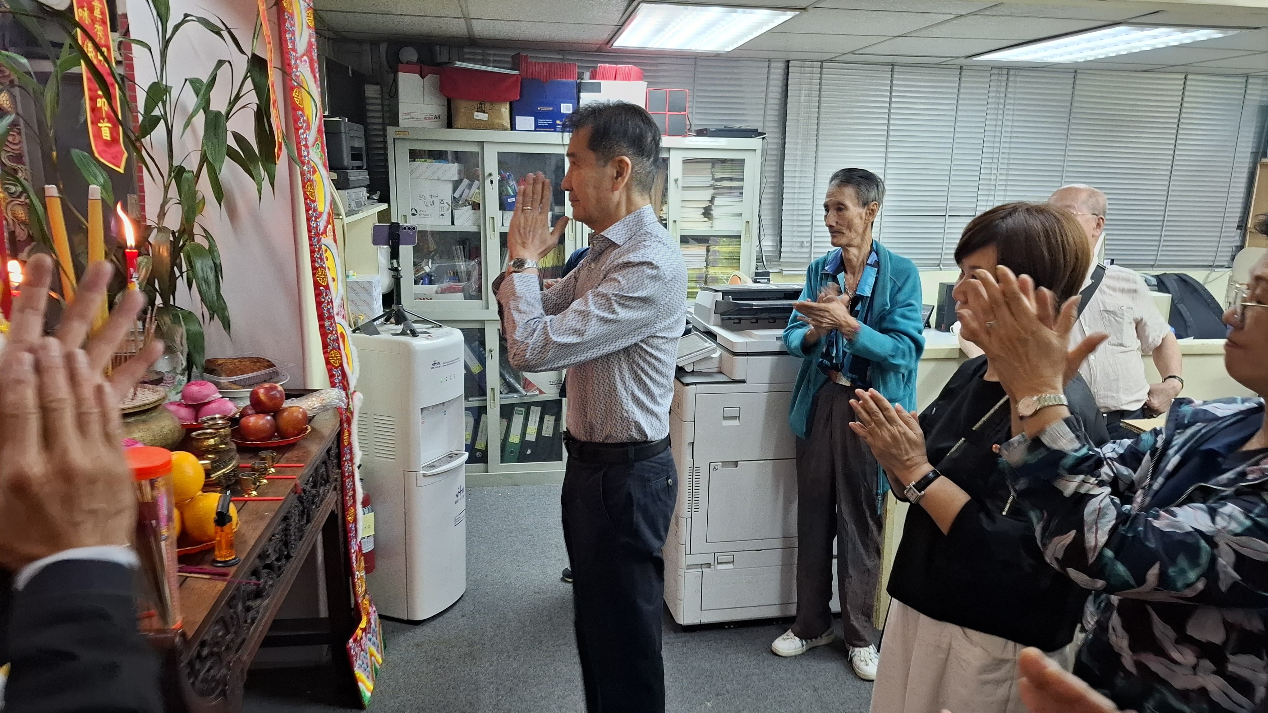 【2024華光先師寶誕子時賀壽儀式】在十月二十九日(農曆九月二十八日)晚上吉時,華光先師子時賀壽儀式已於會館圓滿完成。 由新劍郎及杜韋秀明副主席,鄧美玲、黃志光、吳立熙、杜詠心、煒唐理事率領一眾演員、會館職員酬謝神恩,祝賀華光先師壽辰。 誠心祈求師傅保祐業界同寅班運亨通,身體健康。