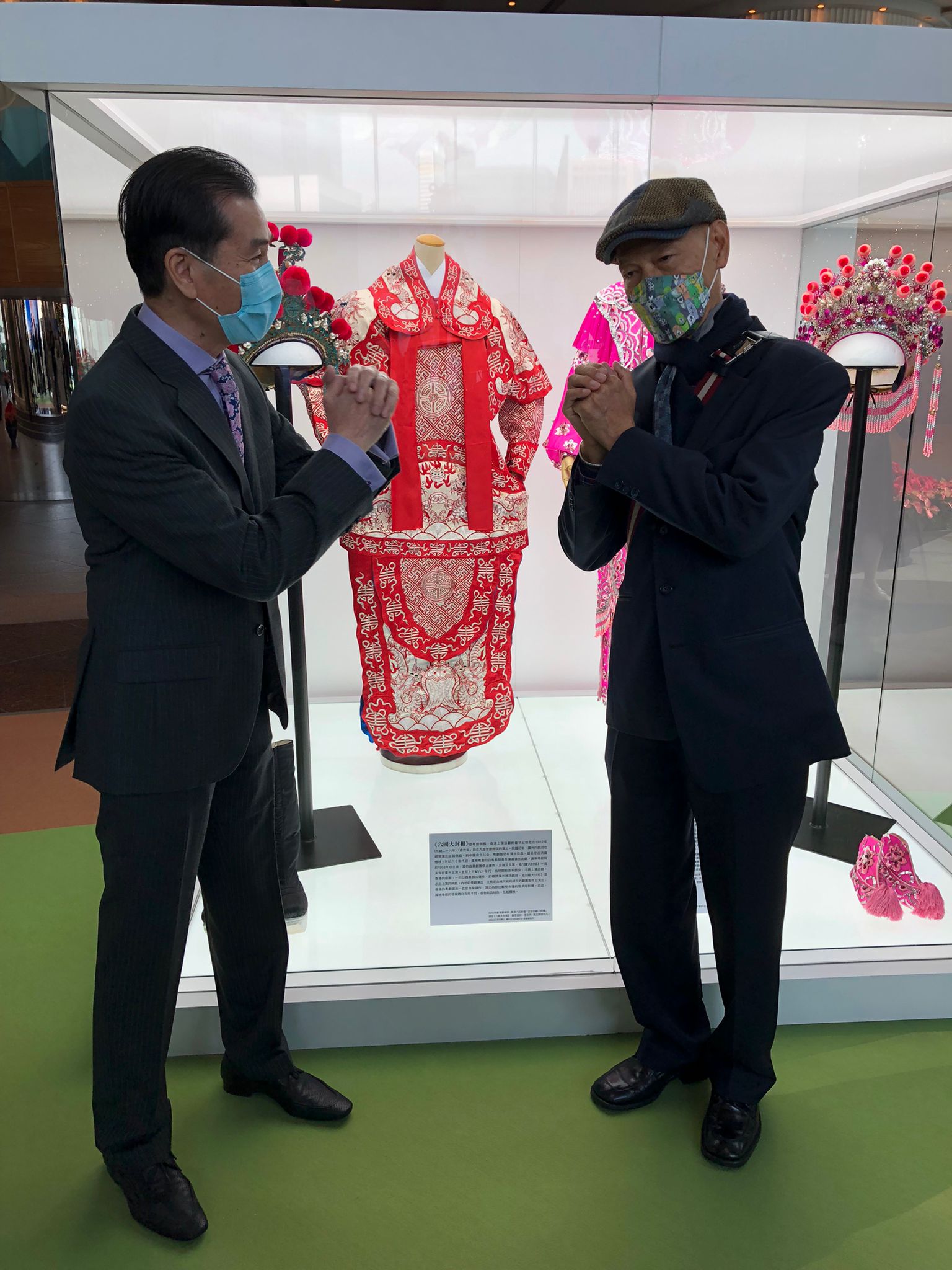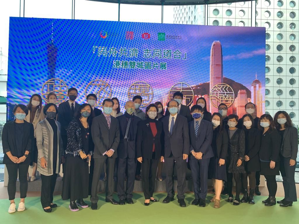 「同舟共濟 志同道合」港穗雙城圖片展覽(香港)開幕禮主席汪明荃博士及羅家英先生《六國大封相》的戲服 泥印劇本 戲橋、場刊及戲團特刊 八和副主席新劍郎先生、羅家英理事、總幹事岑金倩小姐及團結香港基金總裁鄭李錦芬女士合照 展期:2021年12月13日至2022年1月8日 開放時間:中午12點正至晚上7點正 地點:中環交易廣場第一及第二座三樓中央大廳(Rotunda)